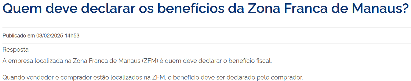 Tal controvérsia, surge no momento em que o Anexo Único menciona que o benefício a ser declarado no Item 49 é a “aquisição no Mercado Nacional”, levantando questionamentos sobre quem deverá efetivamente declarar tal benefício fiscal nas operações envolvendo empresas da Zona Franca de Manaus.